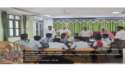 The Commerce Finance Association of Sadakathullah Appa College, Tirunelveli, organized a Placement Programme on 09.10.2024 at 10:00 AM in the Seminar Hall. The programme aimed to equip students with essential skills to succeed in placement interviews and enhance their career readiness. The Resource Person, Dr. G. Balachandar, Placement Officer, Government Arts & Science College for Women, Alangulam, delivered an insightful session on “Ideas to Crack the Placement Interview.” He highlighted the importance of preparation, confidence, resume building, communication skills, body language, and subject knowledge.