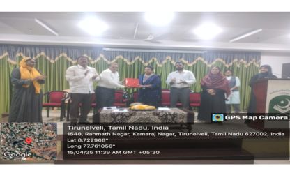 The Department of Commerce, Sadakathullah Appa College, Tirunelveli, organized a National Seminar on 4th April 2025 on the topic “Technological Based Business Operations, Innovation and Challenges.” The seminar aimed to provide a platform for academicians, researchers, and students to discuss emerging technological trends and their impact on modern business practices. The inaugural session was presided over by Dr. S. M. Abdul Khader, Principal, who highlighted the importance of digital transformation and innovation in today’s business environment. Dr. S. M. A. Syed Mohamed Kaja emphasized the need to integrate technology into business operations to remain competitive. The First Technical Session featured a keynote address by Dr. R. Vasantha Gopal, University of Kerala, who discussed technology-driven business strategies and innovation management. The Second Technical Session was handled by Dr. B. Revathi, who elaborated on challenges and opportunities in technological transformation. A total of 35 research papers were presented in online and offline modes, with over 200 participants from various institutions. The seminar concluded successfully, promoting academic collaboration and research discussions on technological integration in business operations.