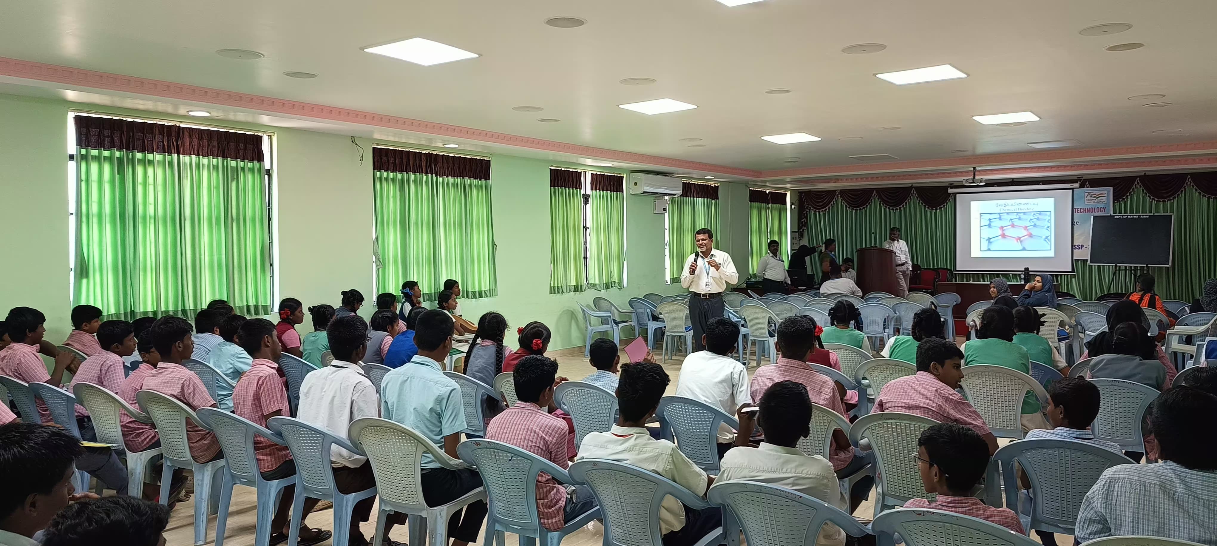 The Department of Chemistry organized workshop for school students for Young Student Scientist Programme on 31.01.2024 at the Seminar Hall. Dr. A. Syed Mohamed, Head of Department of Chemistry cheered the students with the topic ‘Alchemy’. Dr. I. Antony Danish explained the history of Chemistry. Atomic Structure I and II were delivered by Dr. M. Sheik Muhideen Badhusa and Dr. M. Thameem Ansari. Dr. A. Syed Mohamed discussed about ‘Quantum numbers’ followed by Dr. S. B. Mohamed Khalith on ‘Hunds rule, Aufbau principle and Pauli’s Exclusion principle. Dr. P. Jeslin Kanaga Inba, Dr. M. A. Sabitha and Dr. M. Fathima Shahana explained the Periodic Table effectively using charts and models. Dr. P. Anvar Kasim explained the concept of ‘Chemical Bonding’. The afternoon experimental session started with Acid-Base titration, chromatography and pH by Dr. S. Brillians Revin and Dr. S. B. Mohamed Khalith followed by ‘Inorganic Qualitative Analysis’ by Dr. P. Anvar Kasim and ‘Fun Experiments’ by I B. Sc., Chemistry students coordinated by Dr. M. Thameem Ansari. Dr. A. Syed Mohamed is the Convener, Dr. M. Sheik Muhideen Badhusha is the Co-convener and Dr. M. Thameem Ansari, Coordinator of YSSP (Chemistry) organized the programme. 68 students from various schools have benefitted from this programme.