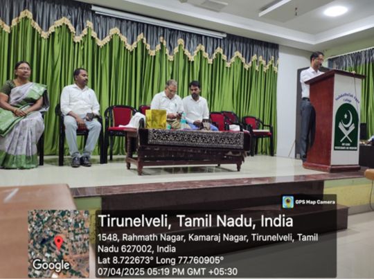 The Department of Commerce (Unaided) – B Section organized the Valedictory Function on “Communicative English” on 7 April 2025 to enhance students’ communication skills. The session was delivered by Dr. S. Mohamed Hanif, Head and Research Department of English & IQAC Coordinator, Sadakathullah Appa College, who highlighted the importance of effective English communication and shared techniques to improve speaking, listening, reading, and writing skills for academic and professional success.