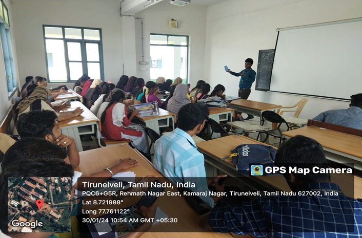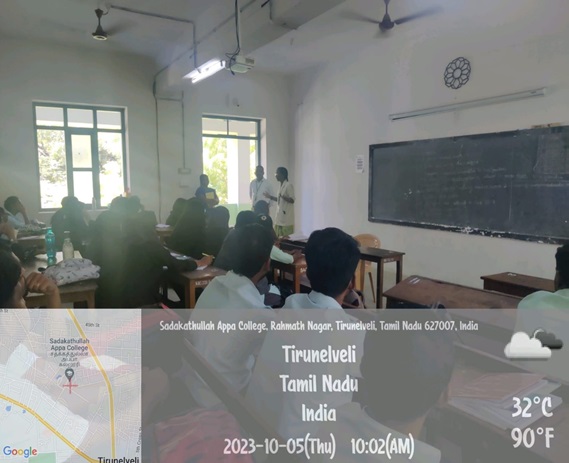 The department of Nutrition and Dietetics organized the Guest Lecture on 04.10.2023 in view on world heart day celebration. Dr. Benitta Mary, M.B.B.S., MD (General Medicine), DM (Cardiology) Consultant and Interventional Cardiologist, CSI Bell Pins Mission Hospital, Tirunelveli delivered a special address on “USE HEART, KNOW HEART”. Dr.S.M.Abdul Kader, Principal, Sadakathullah Appa College, gave the presidential address. Dr. S. M. A Syed Mohamed Khaja, Vice-Principal, Unaided Courses Felicitated the Programme. Mr. S. M. Prasad, Head and Assistant Professor, Department of Nutrition and Dietetics delivered the welcome address. Mrs. V. Angel Mary, Assistant Professor, Department of Nutrition and Dietetics proposed the Vote of thanks.
