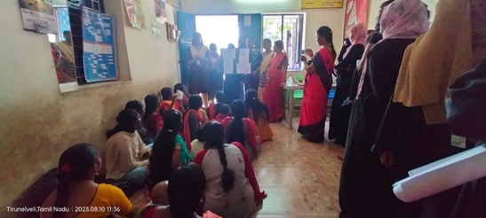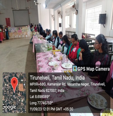 The Department of Nutrition and Dietetics along with the SOP (Sadakath Outreach Programme) of the Sadakathullah Appa college, Tirunelveli organized an awarness programme about the importance of breast feeding to the postpartum mothers in the Anganwadi of Santhinagar block on 10.08.2023. The post graduate students of the Department of Nutrition and Dietiecs, educated the people through charts and they display the foods to be included after the period of postpartum. They also highlighted the importance of breast feeding to the community.
