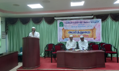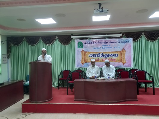 The Department of Arabic Sadakathullah Appa College organised the Inaugural Function on “The Arabic Language in the Historical Perspective”. The programme set out with qirath recited by Al Hafizh. Mohideen, II B.Com Finance Student. Dr. J. Ubaiyathulla, Head of the Department of Arabic welcomed to the participants. Dr. S.M. Abdul Kader, Principal, Sadakathullah Appa College presided over the function and delivered his Presidential address. The inaugural address was presented by the guest of Moulavi. Tameem Ansari Firdousi, Administrator, Duens International School, Al-Jubail, K.S.A. on “The Arabic Language in the Historical Perspective”. The vote of thanks was proposed by Dr. A. Shahul Hameed, Assistant Professor Department of Arabic.