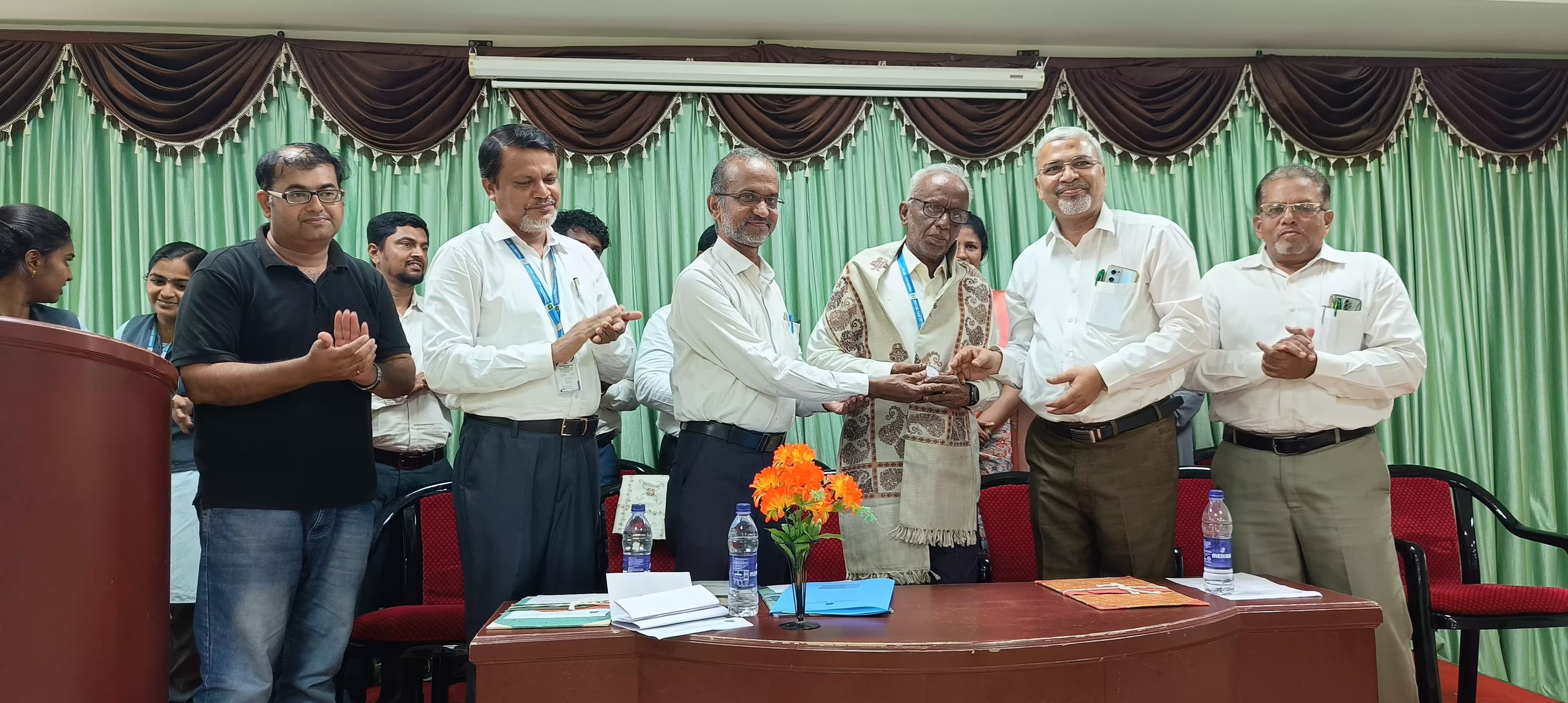 The Department of Chemistry organized Association Valedictory Function on 25.04.2024 in the College Seminar Hall. Dr. T. S. Gnanendra, Head, Department of Biotechnology, Vivekanandha College of Arts and Sciences for Women (Autonomous), Tiruchengode delivered the Valedictory Address on ‘Empowering Drug Discovery: The Significance of Chemoinformatics in Collaborative Research’. A Memorandum of Understanding (MoU) is signed between Department of Chemistry and Origene Biosolutions. Department of Chemistry felicitated Mr. S. M. Tajudeen, Lab Assistant, on his retirement with 1g gold coin. Dr. M. A. Sabitha organized the programme. 99 students of III, II B.Sc., Chemistry and I, II M.Sc., Chemistry participated in the programme.