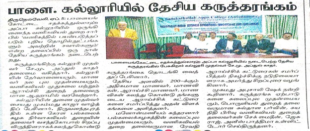 Dr. Abdul Karim, Administrative Office of Sadakathullah Appa College, Dr. Sheik Mydeen, Dr. Anish Fathima, Assistant Professors and Heads of the Department of Commerce Unaided Session, faculty members, Research Scholars, PG and UG students of B.Com, B.Com, Honours and B.Com Finance were actively participated. Number Of Participants 150.