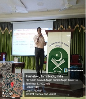 PG and Research Department of Commerce organises its first Guest Lecture Programme on 15.10.2024. The programme commenced with Qirath followed by Tamil Thai Vazhthu. Ms P.O Abinaya Lakshmi of II M.Com welcomed the gathering. The Principal i/c Dr. S.M.A. Kaleelur Rahman, presides over the function. The Vice Principal Dr. S.M.A. Syed Mohamed Khaja, felicitates the function. The Chief Guest Mr. M. Perinbaraj, JJ Logistic Consultancy and Training, Nazerath, Thoothukudi District delivered the lecture on “JOB OPPORTUNITIES IN LOGISTIC DOMAIN”- AN OUTLOOK. The main objective of this Programme is to explain about the job opportunities within the logistics domain, emphasizing its critical role in global trade and supply chain management. The speaker highlighted how the logistics sector is evolving due to technological advancements, globalization, and changing consumer behaviors. Automation and AI are reshaping logistics operations, while the rise of e-commerce has created additional demand for logistics services and roles, including last-mile delivery. He encouraged the students to consider careers in logistics, emphasizing the sector's resilience and ongoing growth potential. This Programme was very informative and fruitful for our students to know about logistics as a dynamic and promising field, offering numerous career opportunities for individuals willing to adapt and grow within the industry. Ms. C. Masana Petchi of III B.Com proposed Vote of Thanks. Nearly 150 students of PG and Research Department of Commerce participated. This Programme was Successfully Organised by the Faculty Members of PG and Research Department of Commerce.