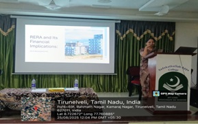 PG and Research Department of Commerce inaugurated its Association Lecture on 25.08.2025 and the guest speakerCA.S. Rajalakshmi, B.Tech., ACA., Practicing Chartered Accountant, Properitor of S.Rajalakshmi Associates, Tirunelveli,delivers the Inaugural Address. The programme commenced with Qirath followed by Tamil Thai Vazhthu. Dr. A. Hamil,Associate Professor and Head, PG and Research Department of Commerce welcomed the gathering. Our Principal Dr. S. M. Abdul Kader,presides over the function. The Vice Principal Dr. Janet Rani , felicitates the function. The Chief Guest delivered the inaugural address on “Financial Implications of RERA”. She highlighted the transformative impact of the Real Estate (Regulation and Development) Act, 2016, on the financial landscape of the real estate sector. The speaker emphasized how RERA has brought about greater financial discipline by mandating that 70% of project funds be deposited in a separate escrow account, curbing fund diversion and ensuring timely project completion. The address also noted the shift towards formal financing, increased investor confidence, and the boost in transparency and accountability. While acknowledging challenges such as higher compliance costs and uneven implementation across states, the speaker concluded that RERA has laid a strong foundation for a more secure, transparent, and financially stable real estate environment in India.This Programme was very informative and fruitful for our students. Ms. Nargees of II M.Com proposed Vote of Thanks. Nearly 180 students of PG and Research Department of Commerce participated.