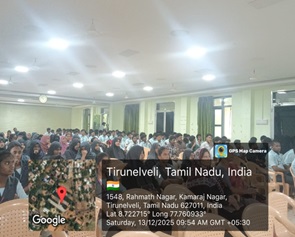PG and Research Department of Commerce jointly organises its first Guest Lecture Programme with The institute of Cost Accountants of India, Nellai Pearl City Chapter on 13.12.2025. The programme commenced with Qirath followed by Tamil Thai Vazhthu. Dr. A. Hamil, Associate Professor and Head, PG and Research Department of Commerce welcomed the gathering. Our Former Head of the Department CMA Jeyakumar, CMA Muthu Krishnan Sankar, Chairman, Nellai Pearl City Chapter andCMA Muthu Maharajan, Secretary Nellai Pearl City Chapter, felicitates the function. The Chief Guest CMA K. Gomathi Sankar, Regional Council Member SIRC of ICMAIdelivered the lecture on “Career Awareness Programme on CMA”. The programme aimed to create awareness among students about career opportunities, scope, and professional growth in the field of Cost and Management Accounting.During the lecture, the speaker explainedthe various career opportunities available to CMAs in areas such as corporate finance, cost control, strategic management, taxation, auditing, and consultancy. The speaker shared real-life experiences and industry insights, motivating students to pursue CMA as a career option. Guidance was also provided on preparation strategies, time management, and balancing academic studies with professional courses.Ms. C. Masana Petchi of I M.Com proposed Vote of Thanks. Nearly 205students of PG and Research Department of Commerce participated. This Programme was Successfully Organised by the Faculty Members of PG and Research Department of Commerce.