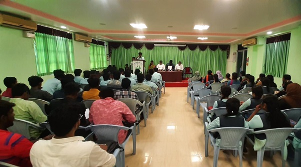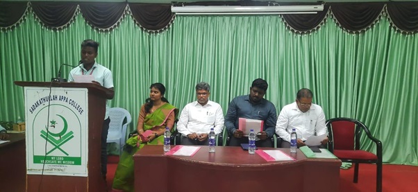 The UG Department of English (Unaided) inaugurated its Literary Association on 02/09/2022 at 4:30 pm in the College Seminar Hall II. Mr. Phinehash, the Founder and Managing Director of YES BLAZERS, consented to be the Resource Person. He delivered a talk on Learn to Pursue Knowledge, Not to Survive. The talk was useful to students. Students could understand the importance and value of a College Degree. The talk shed light on the possible future prospective that the students should have using the Degree. The Principal Dr. S M Abdul Kader and the Vice Principal Dr SMA Syed Muhammed Khaja, the Dean of Arts Dr S Mohamed Haneef and the faculty from the Department of English were present in the function. The entire program was conducted by the Department students..