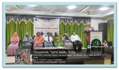The Guest Lecture – I of the Mathematics Association for the academic year 2025-2026 was held on 14.08.2025 at 11.00 a.m. in the Auditorium, Sadakathullah Appa College (Autonomous), Tirunelveli. The programme started with Qirath. Dr. S. Syed Ali Fathima, Assistant Professor, Department of Mathematics, welcomed the gathering. Dr. S. M. Abdul Kader, Principal of the College delivered the Presidential Address. Dr. R. Janet Rani, Vice Principal of the College and Dr. S. Firthous Fatima, Assistant Professor and Head, Department of Mathematics gave the felicitation address. Dr. U. Jerseena, Assistant Professor and Head, Department of Mathematics (PG) introduced the Resource Person. The Resource Person Dr. J. Subhashini, Assistant Professor, Department of Mathematics, St. John’s College, Palayamkottai delivered a Lecture on the topic “Mathematical Perspectives on Uncertainty and its solution strategies”. At the conclusion of the program, Dr. M. Himaya Jaleela Begum, Assistant Professor, Department of Mathematics, proposed the vote of thanks. The programme provided academic enrichment to 107 participants, comprising Undergraduate, Postgraduate and Research Scholars.