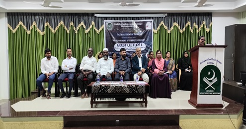 The Department of Computer Science at Sadakathullah Appa College organized an engaging guest lecture titled “The Path to Data Science: A Roadmap for Data Analysts” on July 31, 2024, at 10:00 a.m. in the Seminar Hall. The program began with a Qirath recitation by Mr. K. Abdul Malik (III B.Sc. Computer Science), setting a reflective tone.