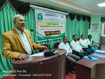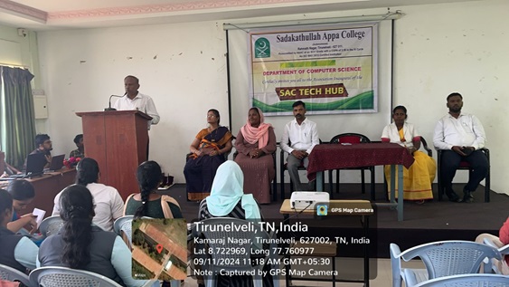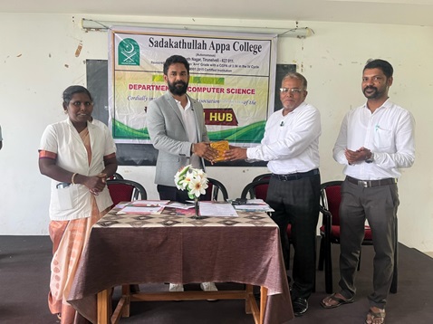 The Department of Computer Science at Sadakathullah Appa College organized the inaugural event of the SAC TECH HUB on July 18, 2024, at 10:00 a.m. in the Seminar Hall. The event marked the formal launch of the SAC TECH HUB Association and the signing of a Memorandum of Understanding (MoU) with Livewire Corporate, Chennai, through its Tirunelveli business partner.